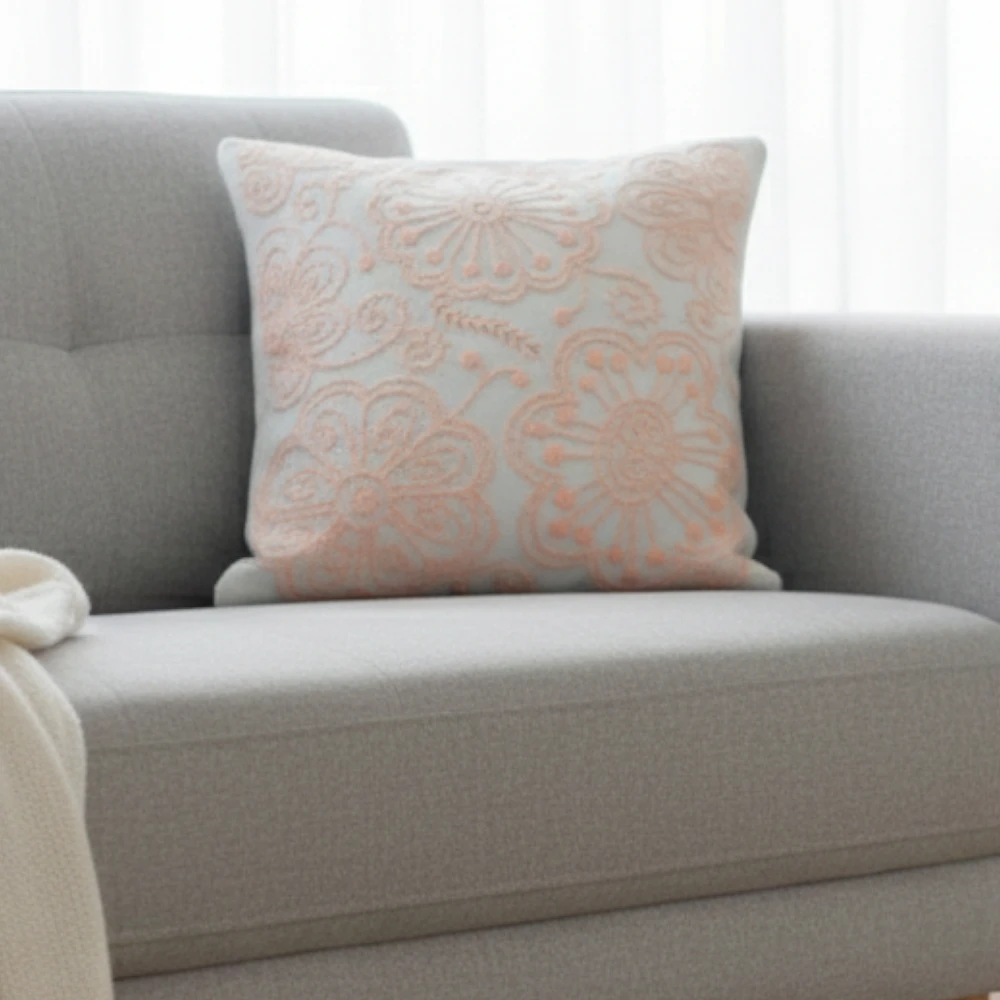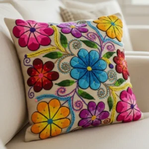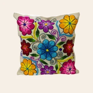 Be the first to review “Funda de cojin blanco con bordados de flores pastel”